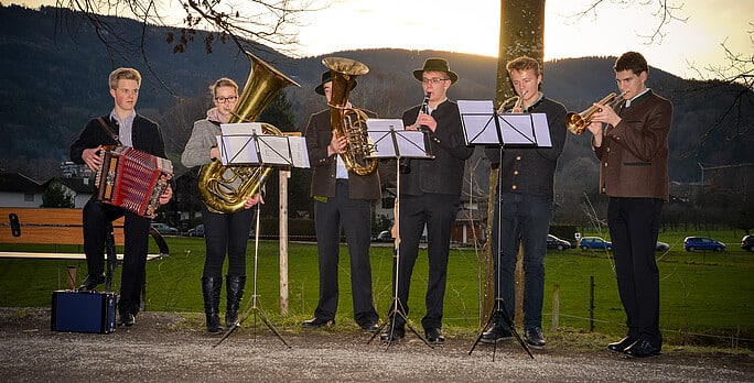 Musikalisch umrahmt wird der Weihnachtsmarkt im Wald von Weisen- und Alphornbläsern sowie örtlichen Gesangs- und Musikgruppen. Das Hirtenspiel der Theater-Jugend und der Besuch des Hl. Nikolaus dürfen natürlich nicht fehlen.