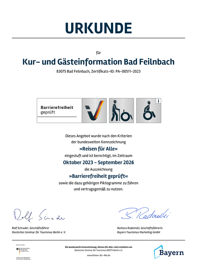 Das oberbayerische Kur- und Naturheildorf Bad Feilnbach zählt zu den ausgezeichneten Kurorten Deutschlands. Das ergab die Recherche des Magazins Focus, das über 350 deutsche Kurorte und Heilbäder unter die Lupe nahm und deren Beste in Sachen medizinischer Kompetenz und Infrastruktur, Qualität und Freizeitangebote in seiner aktuellen Liste präsentiert.